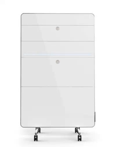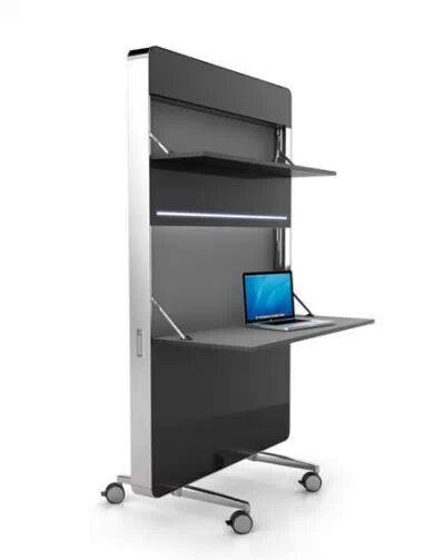 简介说明: NOMADO是一个集成了架子、储藏、插座、工作照明于一体的可移动堆叠桌。表面折叠收起后,变成一个垂直结构,便可以堆堆叠,从而节省空间。外部设计采用铝框包边,表面材料则是一种特殊的 soft-touch 材料制成。