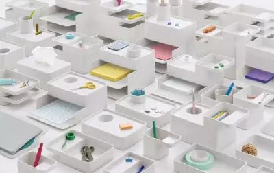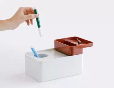 简介说明:这是一套 ABS塑料制作的桌上办公用品,这一系列产品含有大量单品可供选择,包括笔筒、托盘、纸盒等等,可以横竖、单独与堆叠多个纬度使用这款产品。